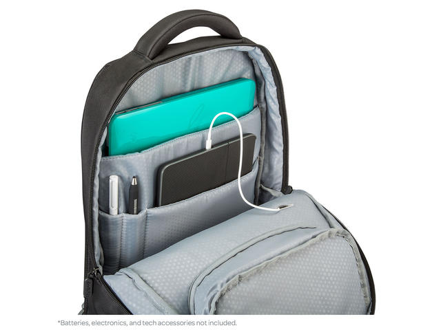- Организацията на отделенията включва такива, за вашия лаптоп (най-голямото побира до 13.3"), за таблети, смартфони и други устройства като фотоапарати, mp3 плейъри, външни зарядни и др.