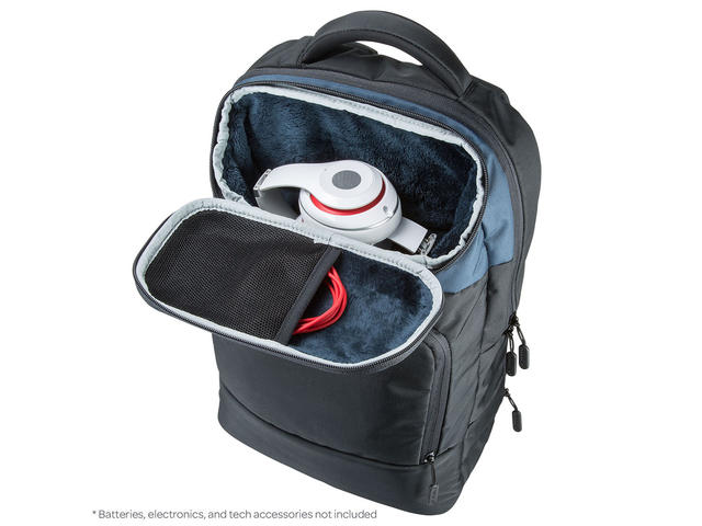 - Отделението "Tech Locker" е най-подсиленото и най-надеждно за съхранение, на фина техника и аксесоари. Изградено е от единичен блок EVA пяна, предпазващ от удар, и покрит с еко пух, който от своя страна предпазва от надраскване.