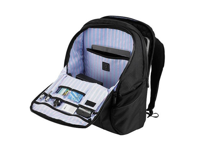 - Отделение за преносим компютър с размери на дисплея до 16 инча, максимален размер 38 × 26 × 4 см