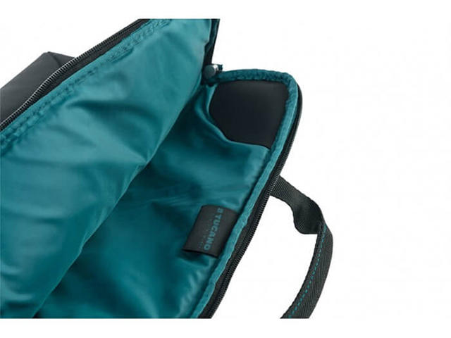 - Налично единично вътрешно отделение с неопренови ъгли за закрепване на лаптопа