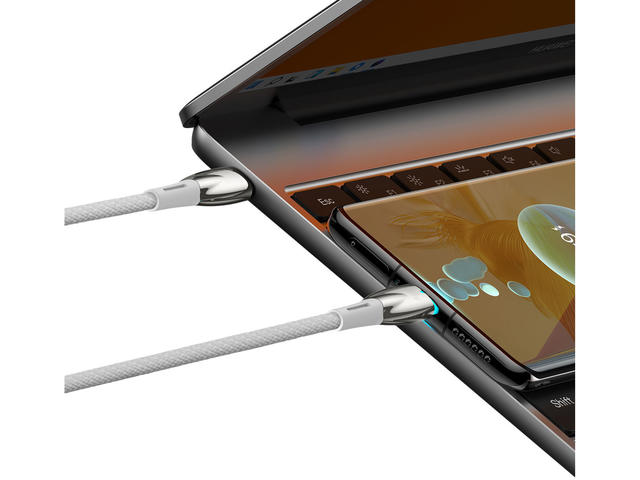 - Трансферът на данни и бързото зареждане са възможни благодарение на кабела Baseus USB-C.