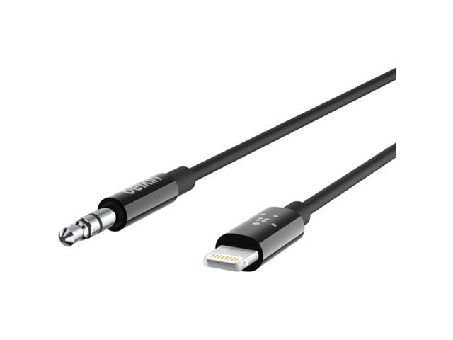 - Ще имете достъп до любимите си плейлисти или подкасти на своя iPhone с черния кабел от 3,5 мм аудио към Lightning.
