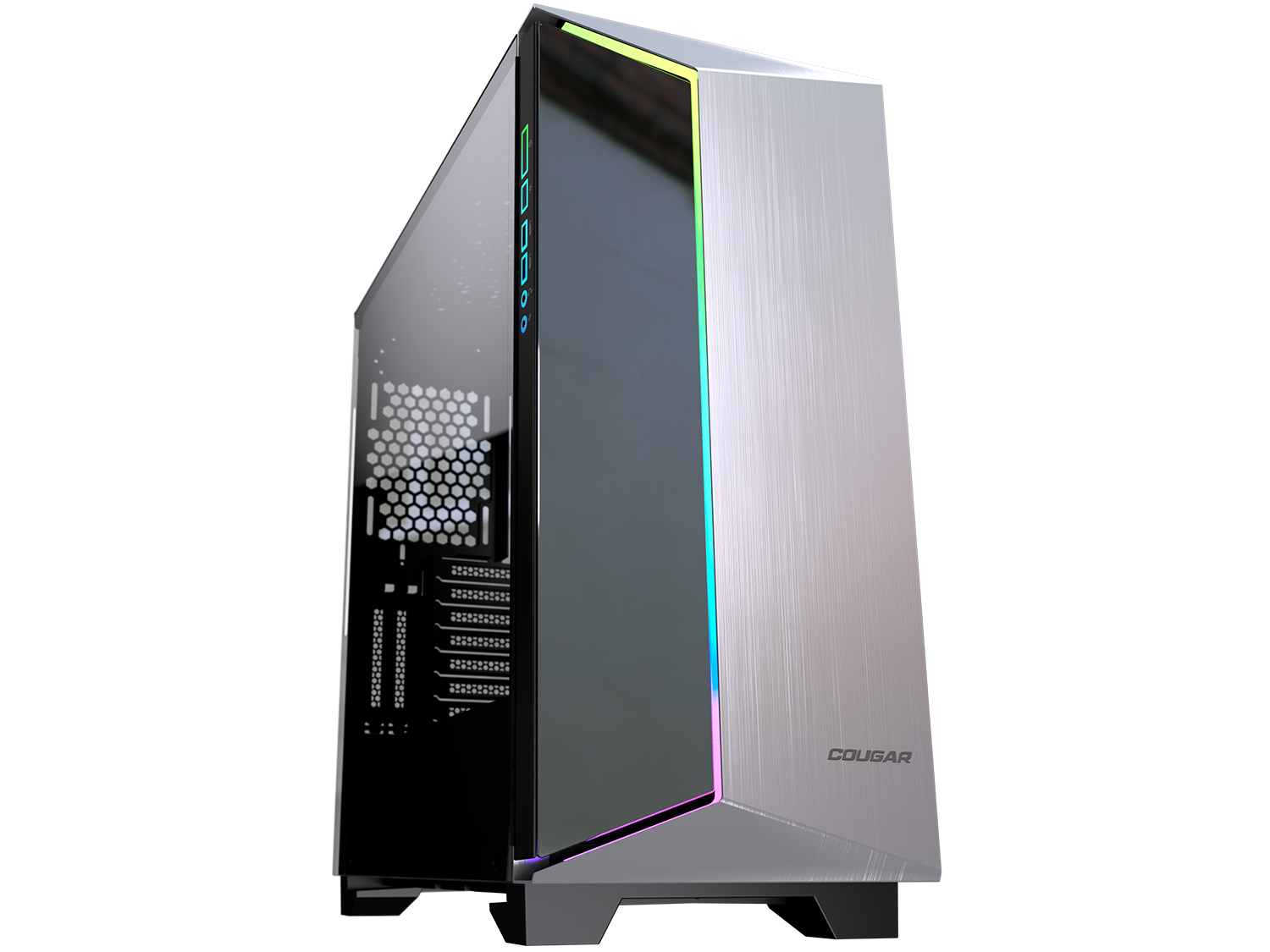 Предният панел на DarkBlader-G от полиран алуминий и асиметричният дизайн внасят уникален и модерен стил във вашата конфигурация.