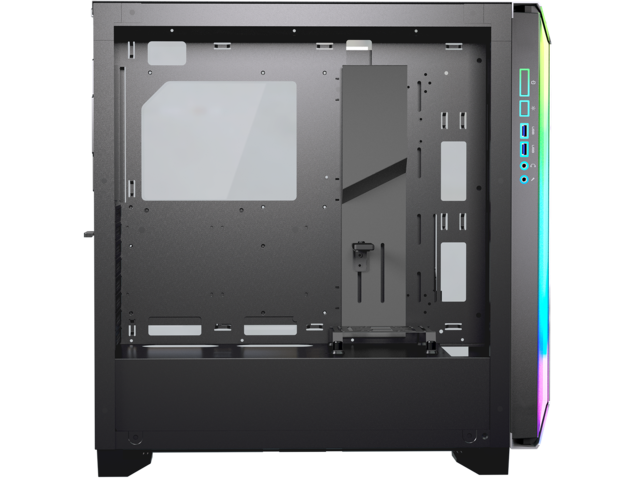 Лентата за прикриване на кабели от лявата страна и капакът за прикриване на кабелите от другата страна осигуряват изчистен изглед и отличен въздушен поток. Освен това държачът на графичната карта държи стабилно високопроизводителните компоненти.