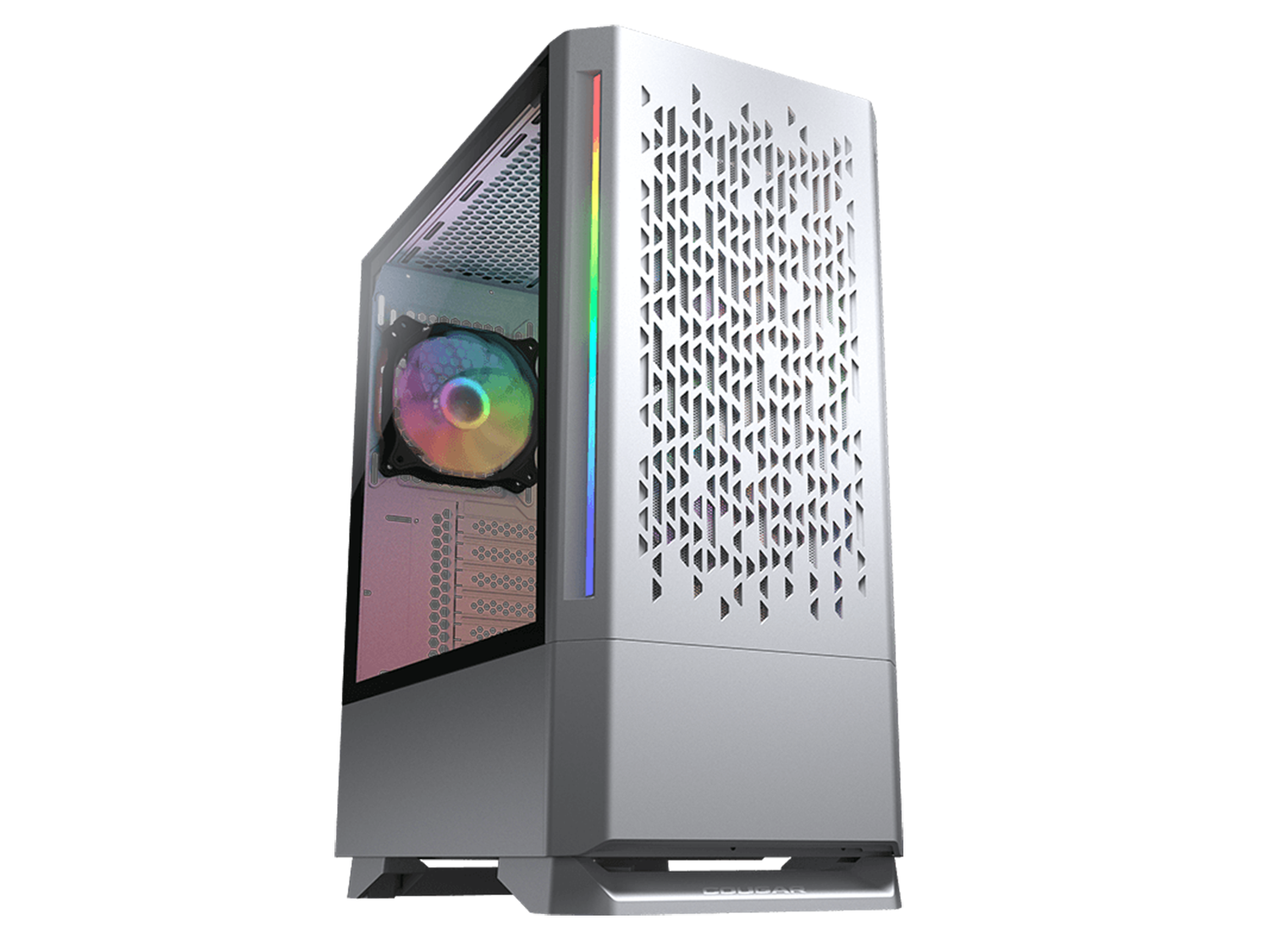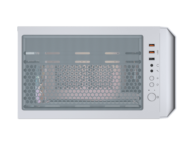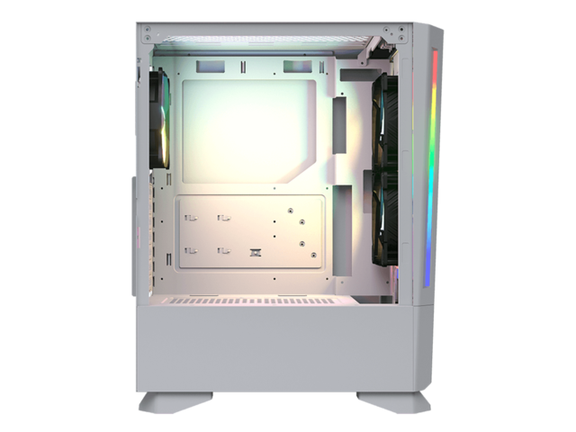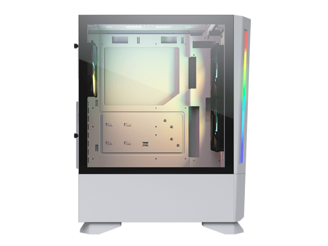 Прозрачен ляв панел 4mm Tempered Glass RGB синхронизиране с M/B Бордова осветителна система Отвори за разширителни слотове: 7 Слотове за устройства: 2 x 3.5", 3+1 x 2.5" (преобразувано от 3,5" отделение за устройство) / (2 SSD тави са включени) Охлаждане: