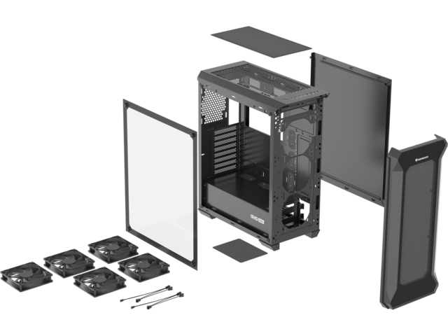 Материал: Закалено стъкло, стомана, ABS Отвори за разширителни слотове: 8 Достъпни слотове за устройства: 0 x 5.25"