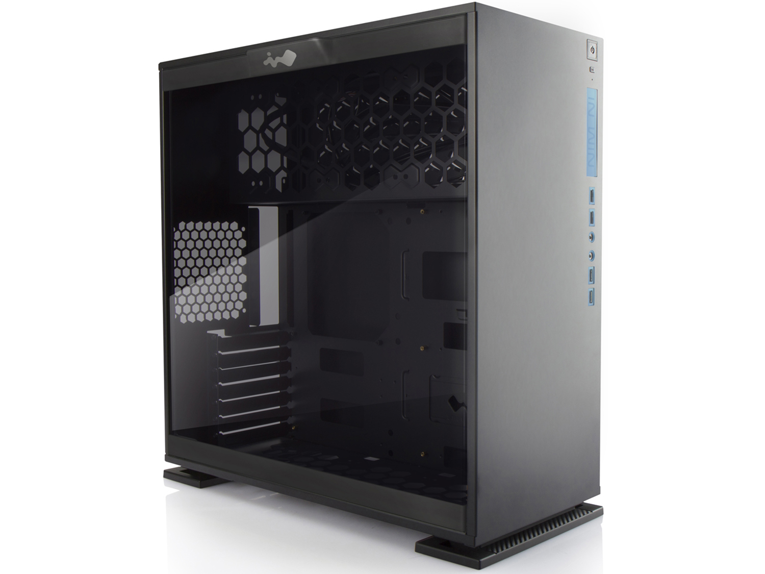 Материал: SECC (студено пресована стомана) и закалено стъкло Отвори за разширителни слотове: 7 Достъпни слотове за устройства: 0 Охлаждане: