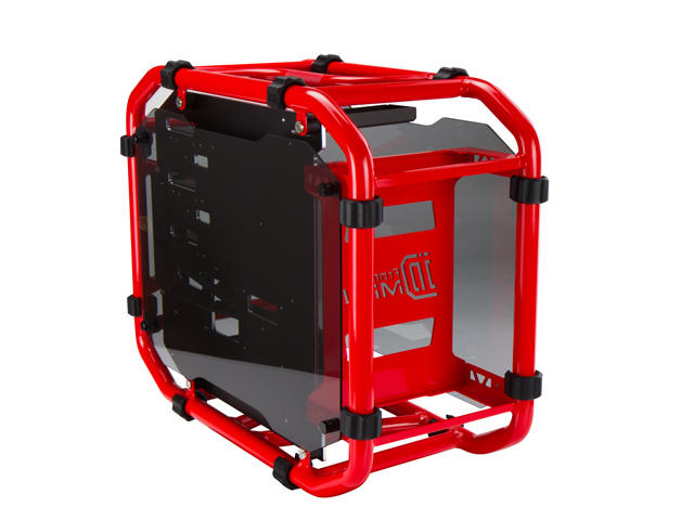 In Win D-Frame mini има масивна и здрава структура, съставена от алуминиева тръба и закалено стъкло на страничния панел.