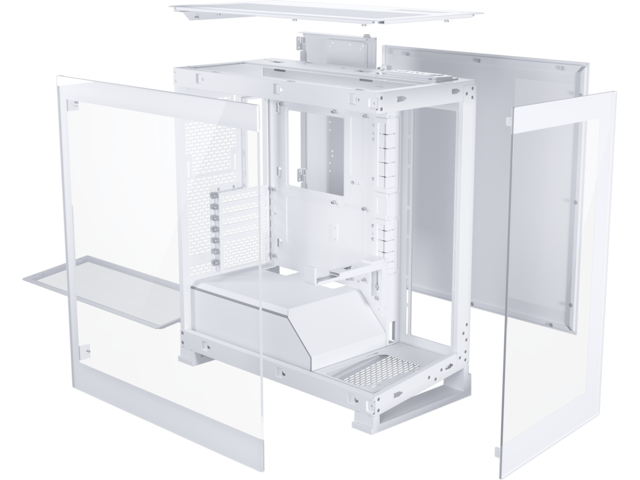 Материали: Стоманено шаси, предно и странично закалено стъкло Отвори за разширителни слотове: 7 Достъпни слотове за устройства: 0 x 5.25"