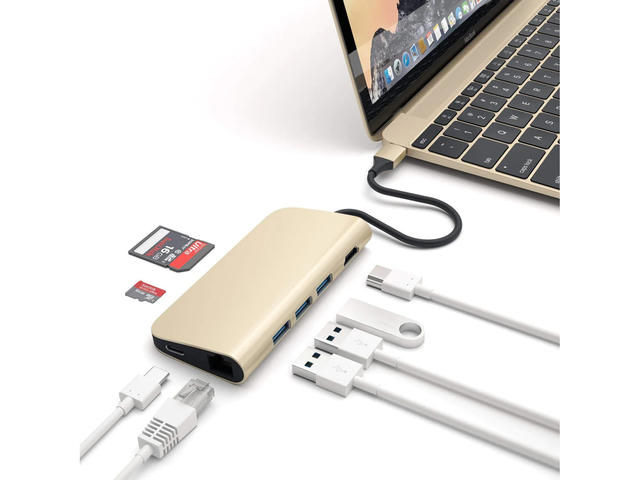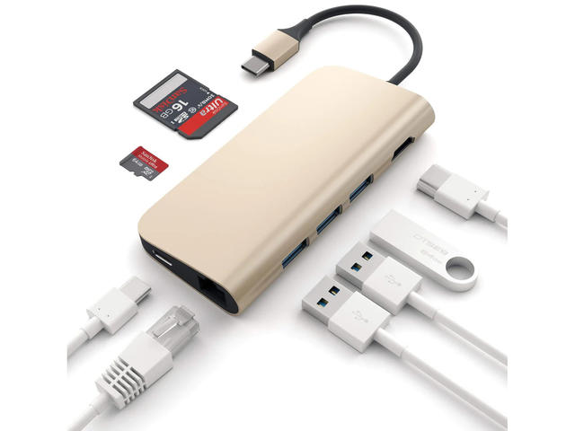 Алуминиевият адаптер Type-C на Satechi добавя множество връзки към вашия лаптоп или настолен компютър само с един порт Type-C. Добавете 4K HDMI, проходно зареждане, Ethernet, три порта USB Type-A и слотове за карти SD и Micro SD към компютъра си.