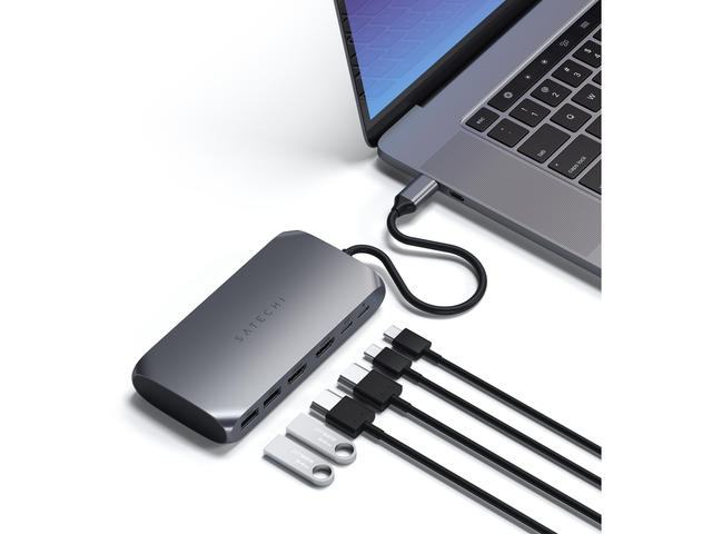 Мултимедийният адаптер USB-C M1 осигурява всички портове, от които се нуждаете за продуктивно работно място, с два порта 4K HDMI (60Hz/30Hz), един порт за зареждане USB-C PD, един порт за данни USB-C и два порта за данни USB-A 3.0 Разполага с два 4K HDMI порта, един с честота до 60 Hz и друг с честота до 30 Hz, за извеждане на дисплей с висока разделителна способност към до два външни монитора с HDMI за най-добра работна конфигурация. Изисква директна HDMI връзка. Идеален за кабелни мишки, клавиатури, USB твърди дискове и др., двата порта за данни USB-A и портът за данни USB-C на адаптера свързват множество периферни устройства. USB-A портовете не поддържат CD четци, включително Apple SuperDrive.