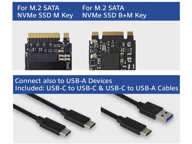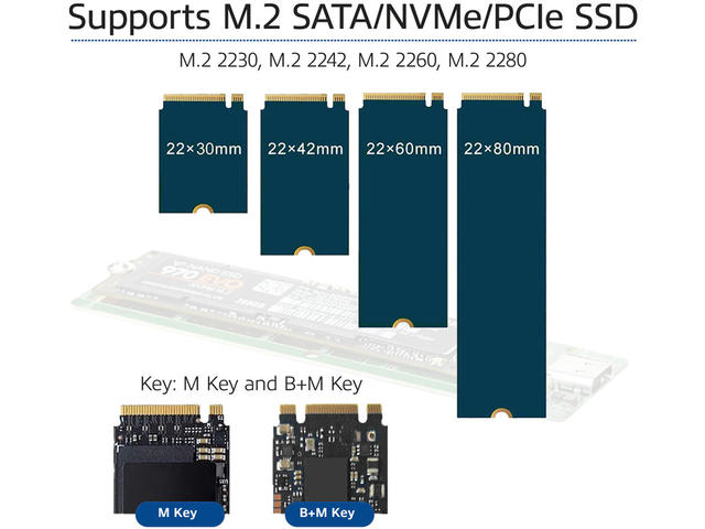 - B+M-Key NVMe, B+M-Key SATA, M-Key NVMe, M-Key SATA