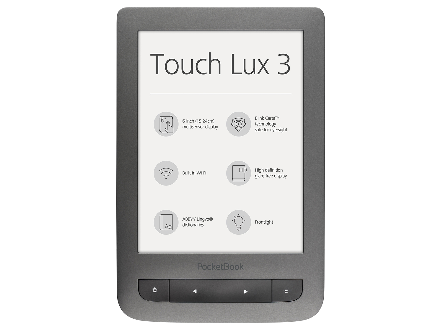 6-инчов E-Ink Carta капацитивен мултитъч екран с предно осветление и резолюция 1024 x 758 пиксела