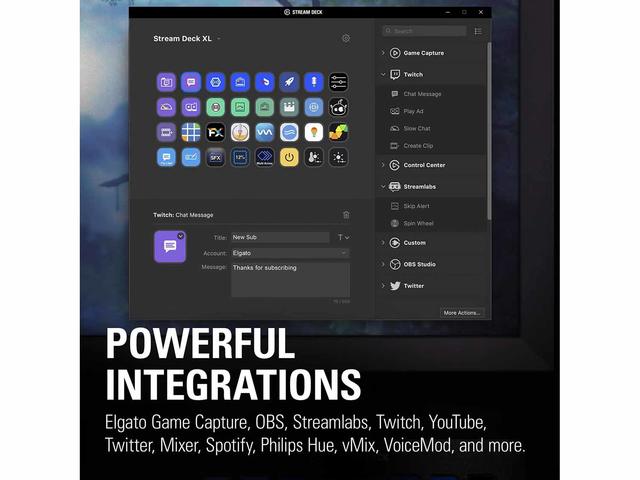 - Elgato 4KCU, OBS, Twitch, YouTube, Twitter, Discord и др. Stream Deck XL интегрира вашите инструменти и автоматично разпознава вашите сцени, медии и аудио източници. Така че можете директно да организирате потока си в движение. И да ангажирате социалните си мрежи в идеалния момент.