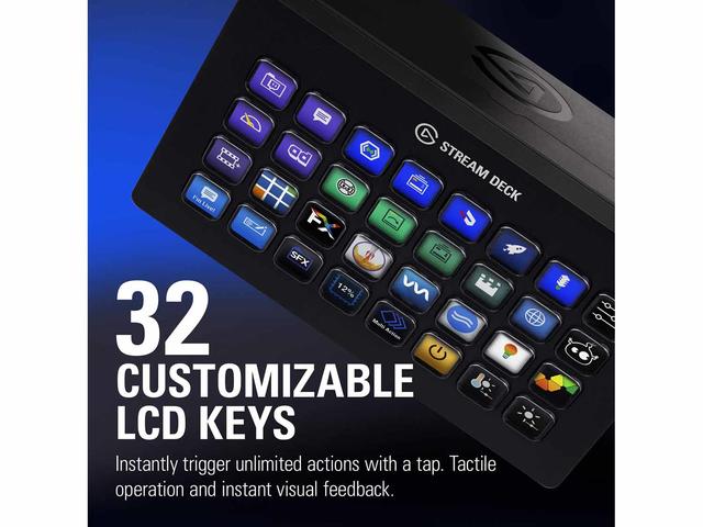 - Stream Deck XL предоставя още повече творчески възможности на върха на пръстите ви. Това означава, че получавате повече контрол на студийно ниво, за да оптимизирате съдържанието си. Повече достъп до спестяващи време интеграции. Повече възможности за повишаване на производствената стойност. Повече от всичко, което поддържа потока ви свеж, а аудиторията ви прикована.
