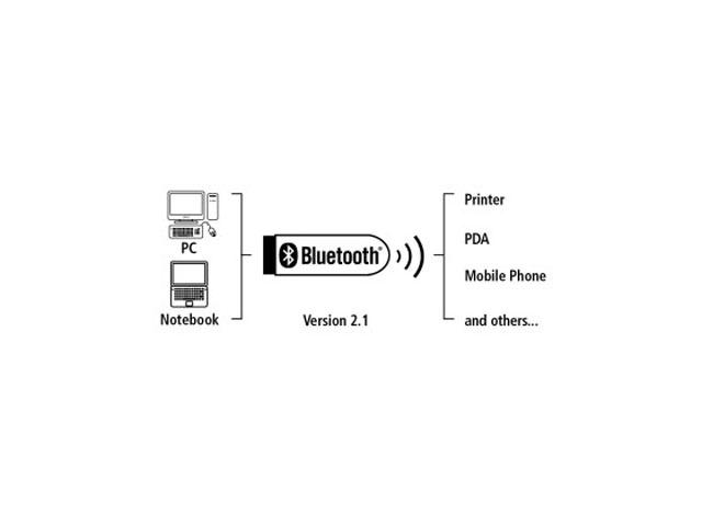 - универсален мини Bluetooth адаптер за удобен, безжичен обмен на данни между персонален компютър или лаптоп и други Bluetooth устройства (например мобилен телефон, PDA, принтер и т.н.)