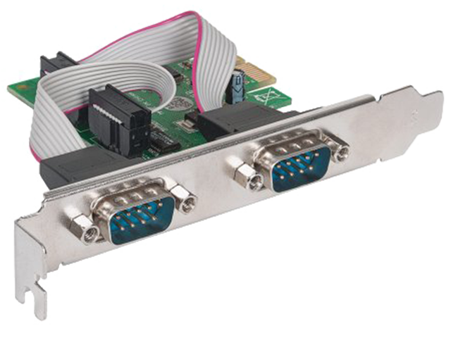 - Осигурява два настройваеми серийни DB9 порта