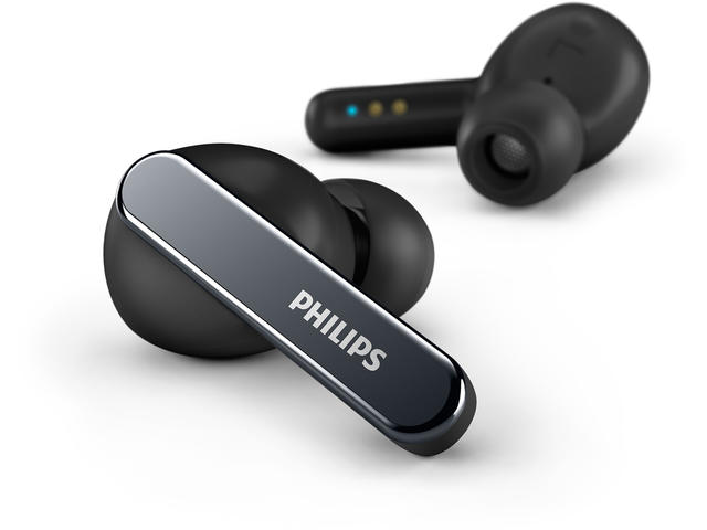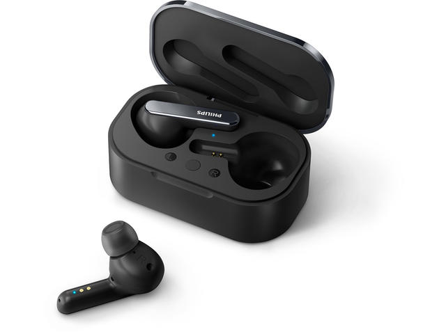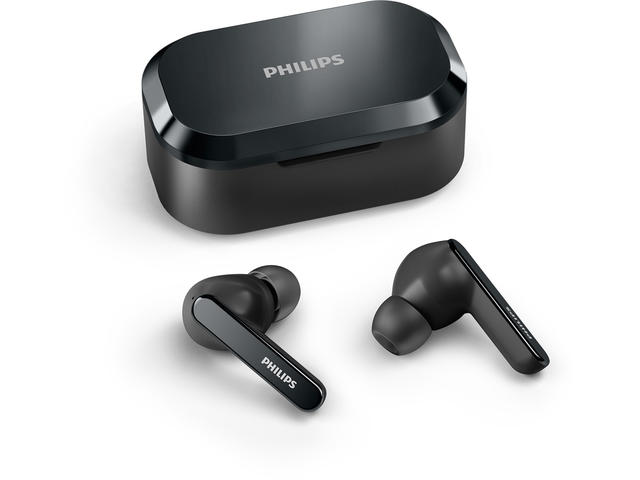 Удобен калъф за зареждане, Калъфът, съвместим с Qi, може да се зарежда безжично или чрез USB-C, IR сензор. Музиката спира на пауза, когато свалите микрокапсула, Приложение Philips Headphones, IPX5 устойчиви на вода и изпотяване,