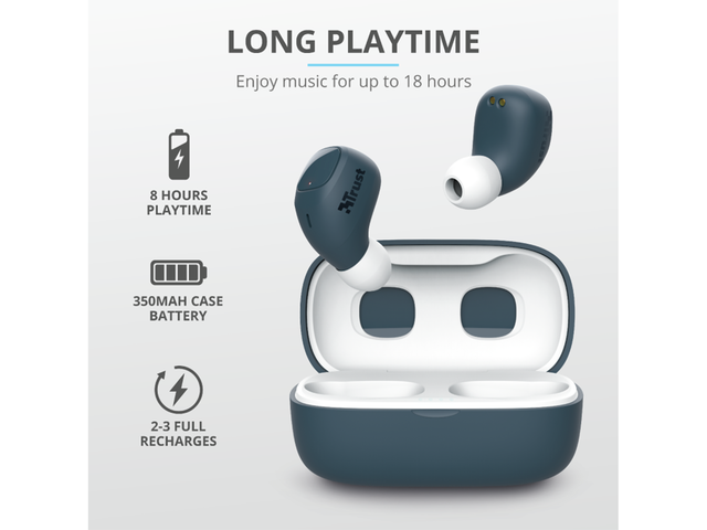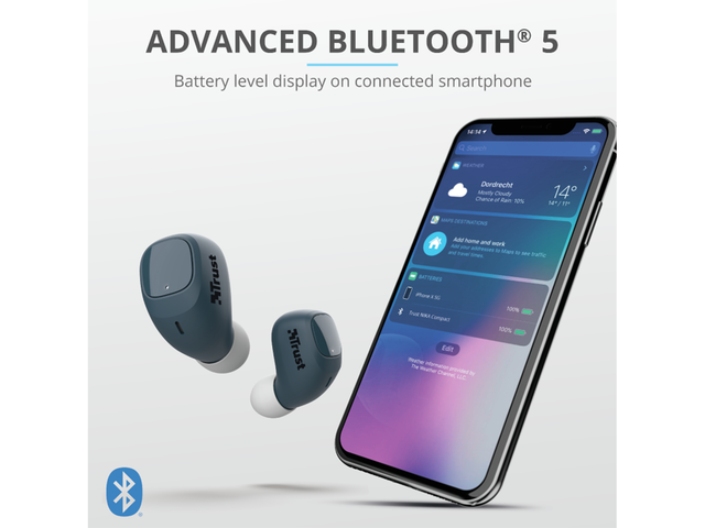 Живейте свободно, без да се оплитате в кабели, благодарение на Trust Nika Compact. Слушайте музика вкъщи, докато телефонът ви се зарежда или стои на сигурно в чантата ви. Nika разполагат с удобни бутони за управление, както и възможност за зареждане докато сте на път, което гарантира, че ще се наслаждавате на музиката си дори по време на по-дълги пътешествия.