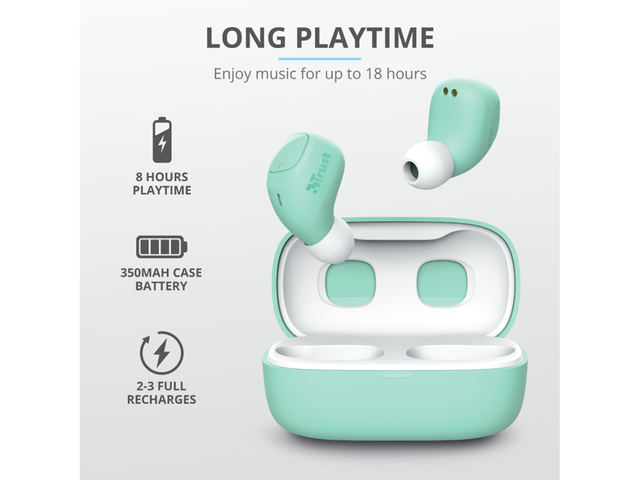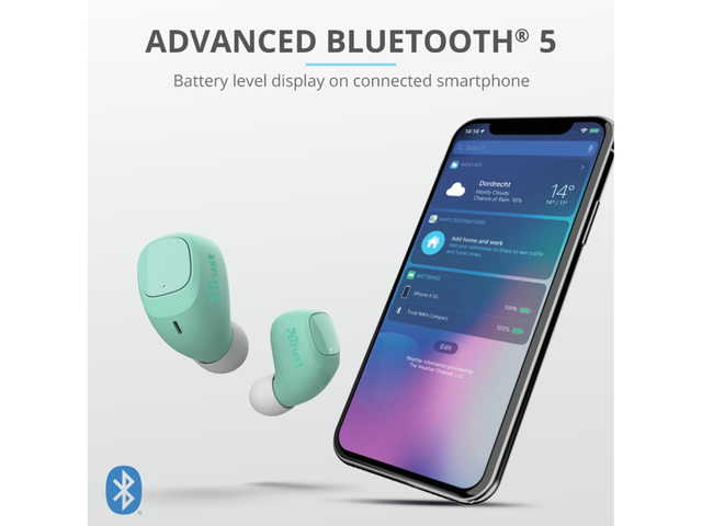 Живейте свободно, без да се оплитате в кабели, благодарение на Trust Nika Compact. Слушайте музика вкъщи, докато телефонът ви се зарежда или стои на сигурно в чантата ви. Nika разполагат с удобни бутони за управление, както и възможност за зареждане докато сте на път, което гарантира, че ще се наслаждавате на музиката си дори по време на по-дълги пътешествия.