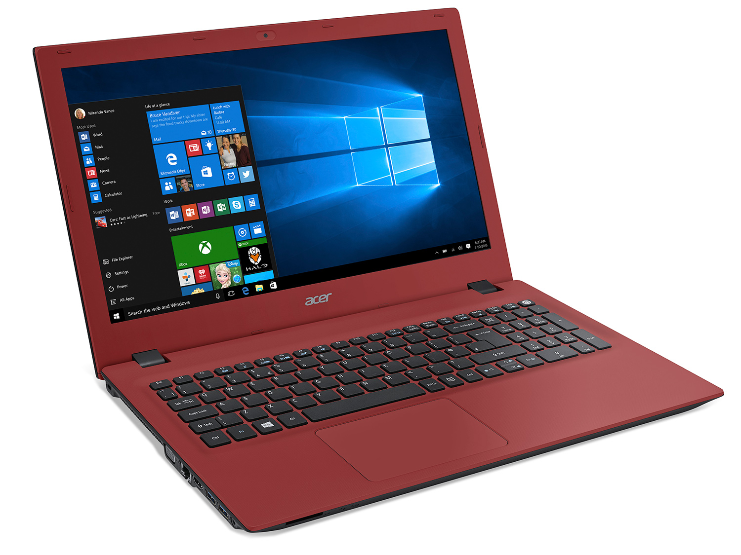 На лявата страна се намира главният вентилационен отвор, един VGA, един HDMI, един LAN и два USB 3.0 порта, както и един 3.5 мм аудио жак. Това означава, че на дясната страна остават само един USB 2.0 порт, DC порта за зареждане и оптичното устройство. Четецът за SD карти е позициониран на предната страна, под LED светлините.
