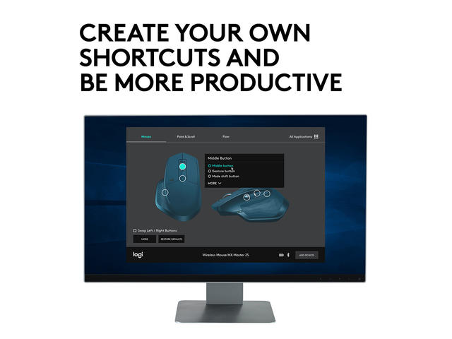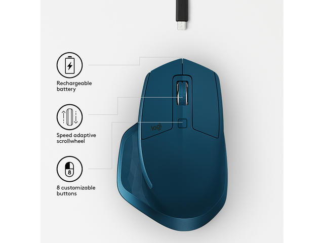 Logitech MX Master 2s може да се свърже чрез безжичния Logitech ресийвър или с Bluetooth, а живота на батерията е до 40 дни с едно зареждане.