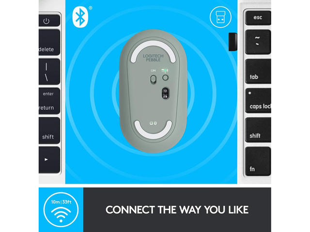 - свържете се просто с Bluetooth® или с малкия 2.4 GHz USB приемник - съхраняван в магнитния капак на мишката, обхват от 10 метра