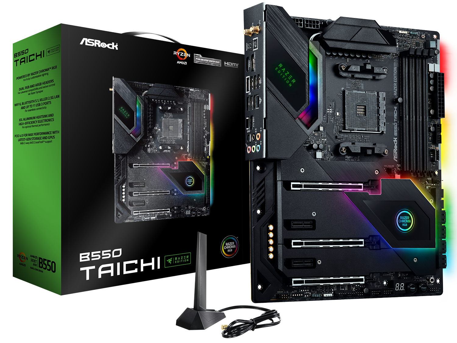 - 1 x Vertical M.2 Socket (Key E) в комплект с WiFi-802.11ax модул (on the rear I/O)