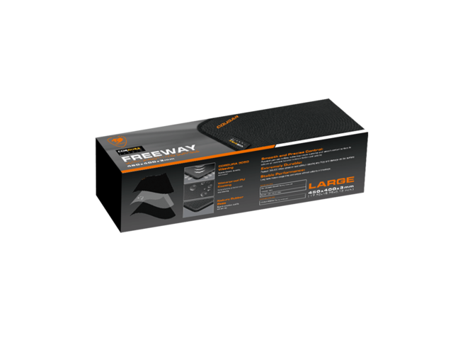 - Подложката за мишка COUGAR Freeway има нова тъканна повърхност от CORDURA®, която е с висока якост, гладка и лека, осигурява изключителна издръжливост, стабилност и гладък контакт, за да има най-добра прецизност и контрол на мишката за повечето геймъри.