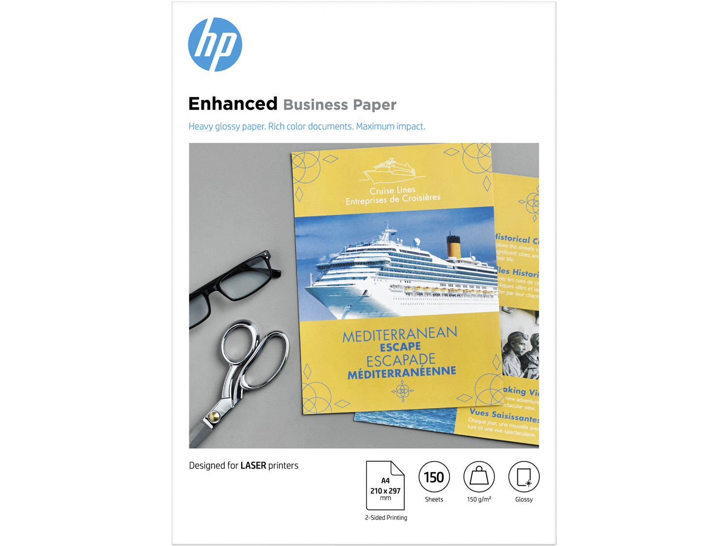 - С професионалната гланцирана хартия за лазерен принтер HP можете да изготвяте впечатляващи брошури, листовки и маркетингови материали