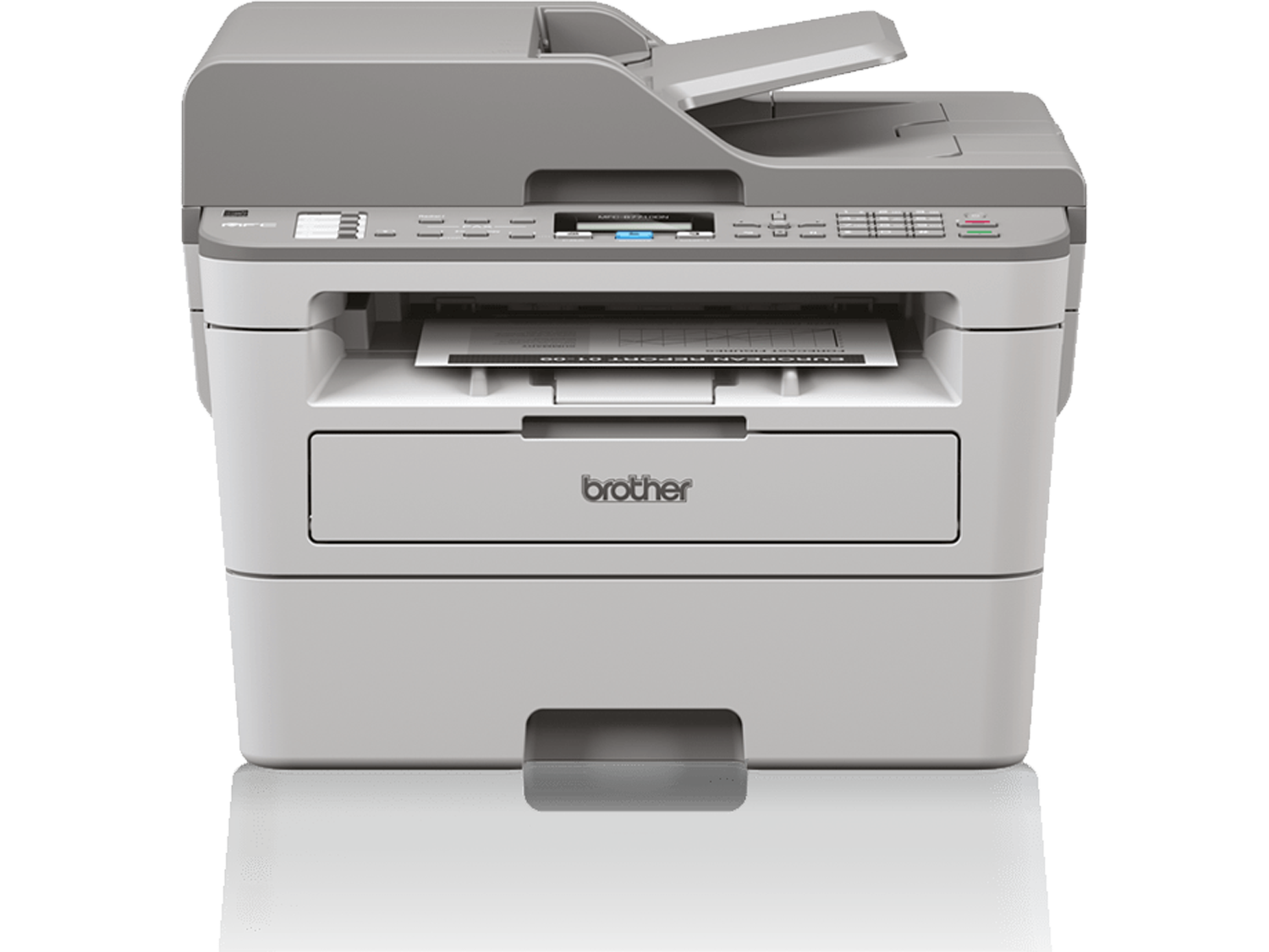 - Подаване на хартия: стандартна тава за 250 листа, слот за ръчно подаване на 1 лист, ADF - 50 листа