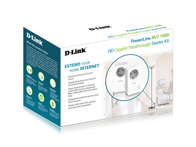 1000 гигабитов стартов комплект, който улеснява създаването на високоскоростна мрежа HomePlug при скорости до 1000Mbps1. Комплектът включва два DHP-600AV PowerLine AV2 1000 Gigabit адаптери - просто ги включете в наличните захранвания и натиснете бутона Simple Connect (Просто свързване), за да създадете сигурна връзка. Електрическия контакт остава достъпен за използване от друго електрическо устройство. Панелът Passthrough включва филтриране на шума, което помага да се предотврати шумът от сигнал от електрическо устройство, включено в гнездото, да повлияе на вашата PowerLine връзка LED индикатор Интерфейс: RJ-45 Gigabit Ethernet LAN port Стандарти: IEEE 802.3, IEEE 802.3u, HomePlug AV2, IEEE 1901 Защита: 128-bit AES data encryption Размери: 38 x 114 x 59 мм. (за всеки адаптер) |
