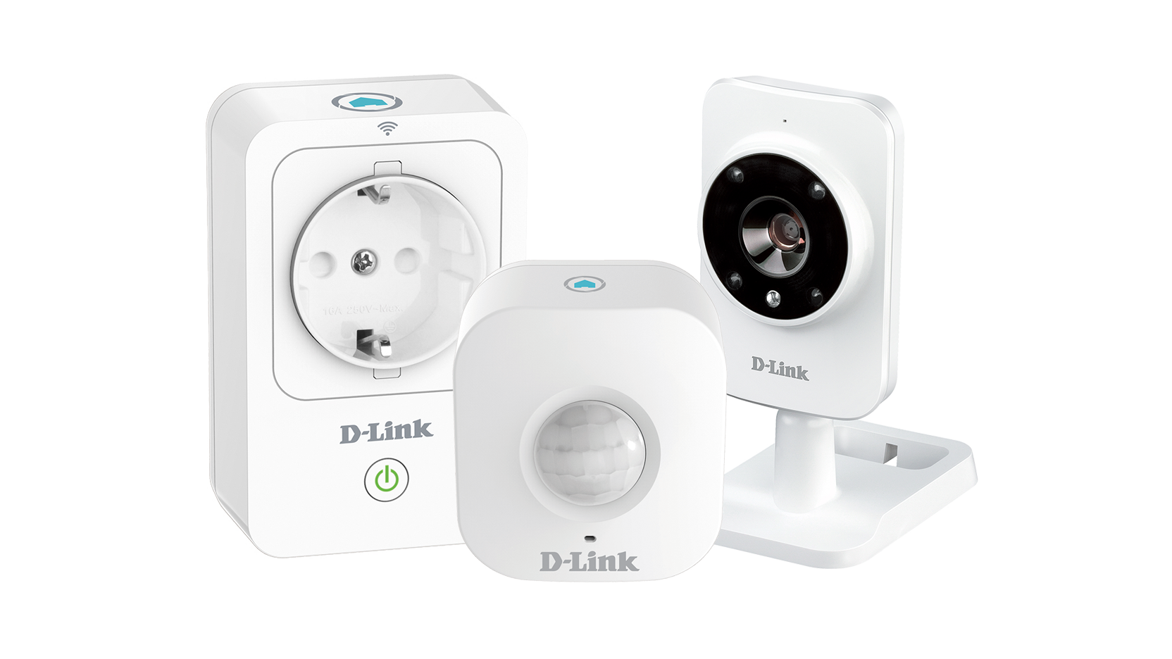 - Комплект от смарт усртойства - D-Link myHome SmartPlug, D-Link mydlink Home Wi-Fi Motion Sensor и D-Link myHome Monitor HD