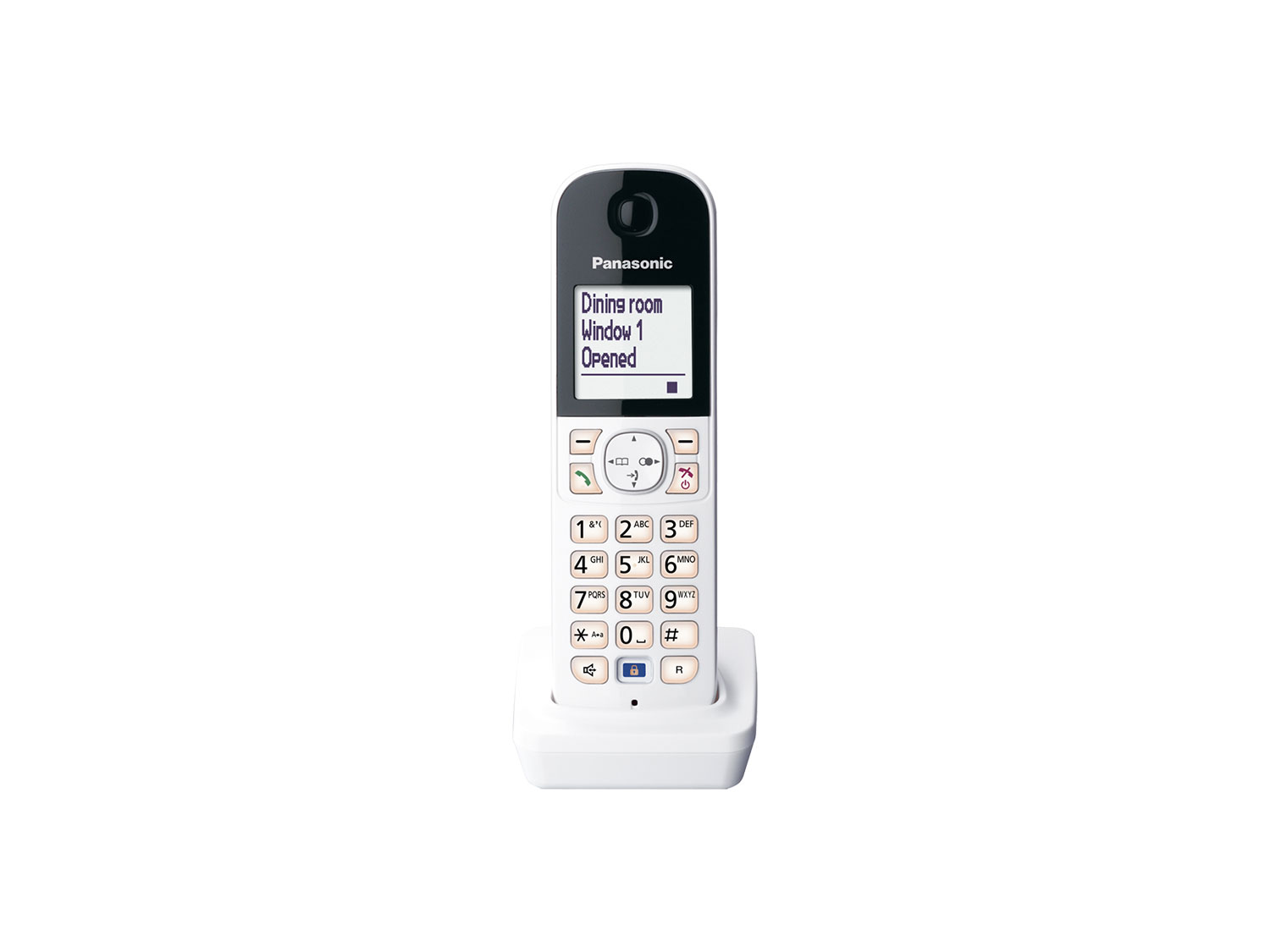 - Безжична слушалка Panasonic KX-HNH100FXW е допълнителна телефонна слушалка за Panasonic Smart Home, която ви известява с гласови съобщения за събития в системата и ви позволява да управлявате умен контакт Panasonic