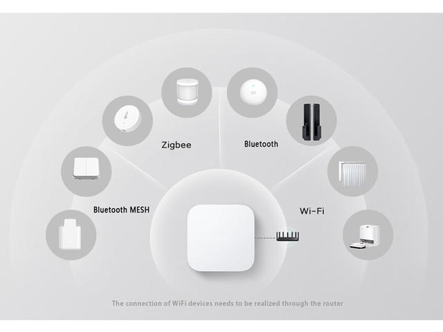 - 3 -те протоколи за комуникация Bluetooth, Bluetooth Mesh и Zigbee са интегрирани в Hub 2 на Xiaomi. Един шлюз може да свърже различни устройства, разговарящи с различни протоколи