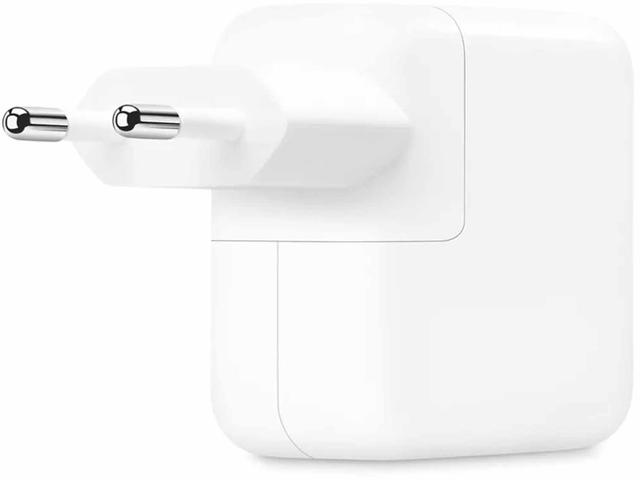 - Захранващият адаптер с два порта USB-C с мощност 35 W ви позволява да зареждате две устройства едновременно, независимо дали сте у дома, в офиса или в движение. Apple препоръчва да го използвате с MacBook Air. Можеш да го използваш и с iPhone, iPad, Apple Watch и AirPods.