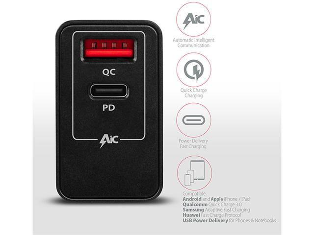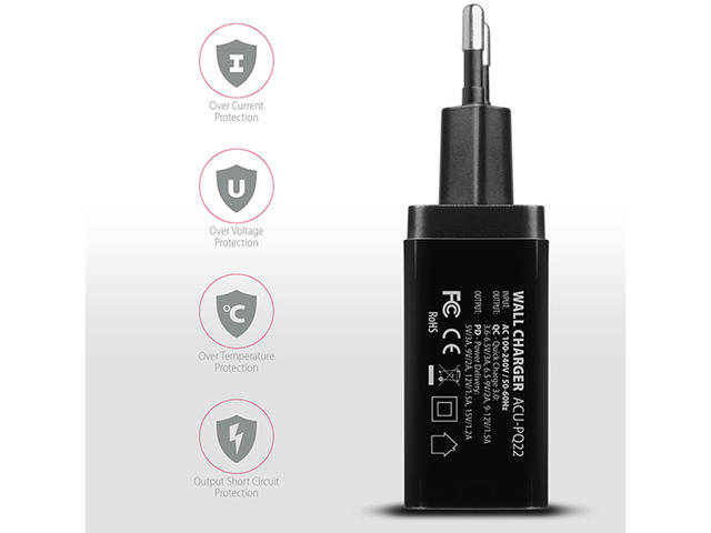 - обща максимална мощност 18 W (при използване на един QC или PD порт)