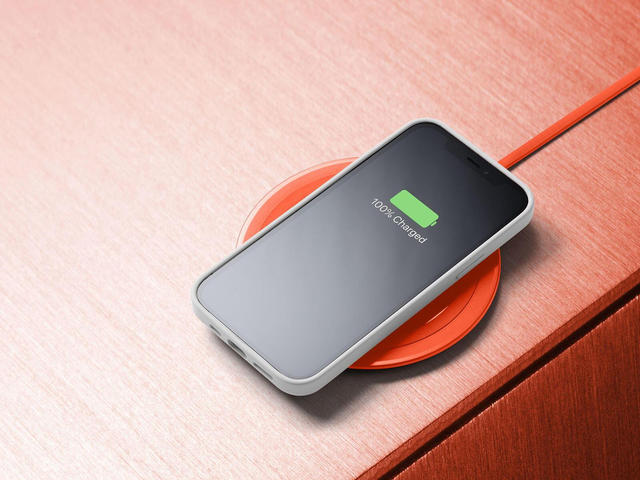 Безжичното зарядно NEON е Qi-сертифицирано от Wireless Power Consortium, което ви позволява да зареждате бързо всички смартфони, съвместими с безжичното зареждане Qi. Има вграден USB кабел и компактен размер позволявайки ви да поддържате телефона си зареден и винаги на една ръка разстояние. За да се осигури бързо зареждане при 10W изход, се изисква използването на адаптивно USB зарядно с минимум 18W, което не е включено в пакета.