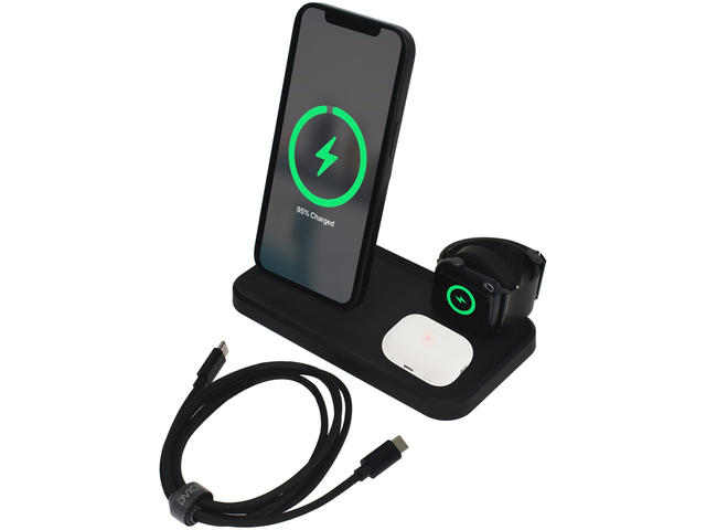 - Зареждане 3 в 1: Зарежда смартфон, Apple Watch и AirPods.