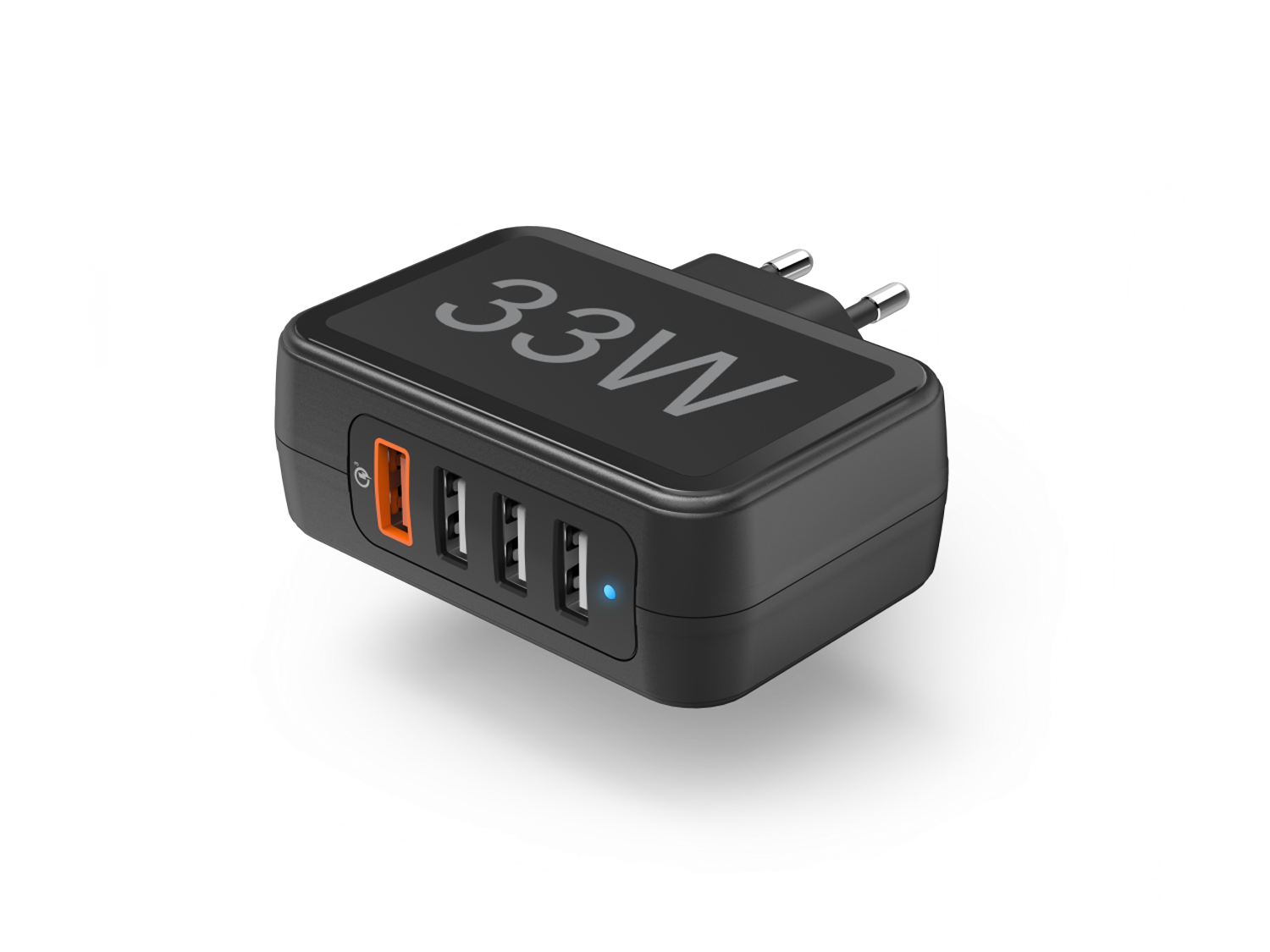 - Максимална изходна мощност: 33 W - ако и четирите порта са заети, USB портът се зарежда с Qualcomm® Quick Charge™ 3.0 с 18 W, а останалите три USB порта - с по 5 W