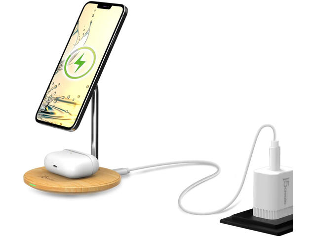 - Съвместимост с iPhone, MagSafe, AirPods 7.5 W безжично зареждане на iPhone чрез MagSafe, 5W безжично зареждане на AirPods, 7.5 W и 5 W безжично зареждане на iPhone и AirPods, когато зареждате и двата едновременно