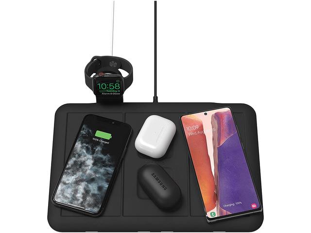 - Подложката за безжично зареждане 4 в 1 ви позволява да зареждате всичките си устройства с поддръжка на Qi, независимо от марката, на едно централно място.