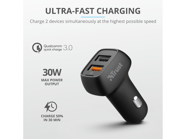- Ултра бързо автомобилно зарядно устройство с 2 USB порта