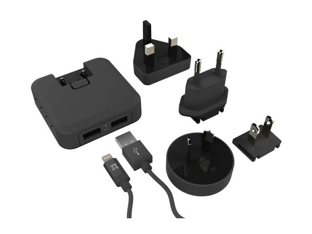 - Разполагате с 2 USB порта, с мощност от по 2.1А / 10W, подходящи за бързо и надеждно зареждане на iPhone, iPad и iPod устройства, като комплектът включва и Lightning кабел, и преходници за европейския, английския и американския стандарти за контактите на електрическата мрежа