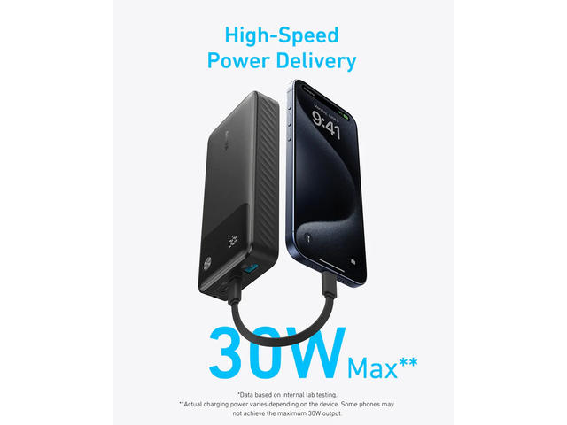 Пълното зареждане отнема по-малко от 4 часа , чрез 30W високоскоростно зарядно устройство, след което сте готови да зареждате бързо устройствата си, когато сте в движение. (*зарядното устройство не е включено в комплекта)