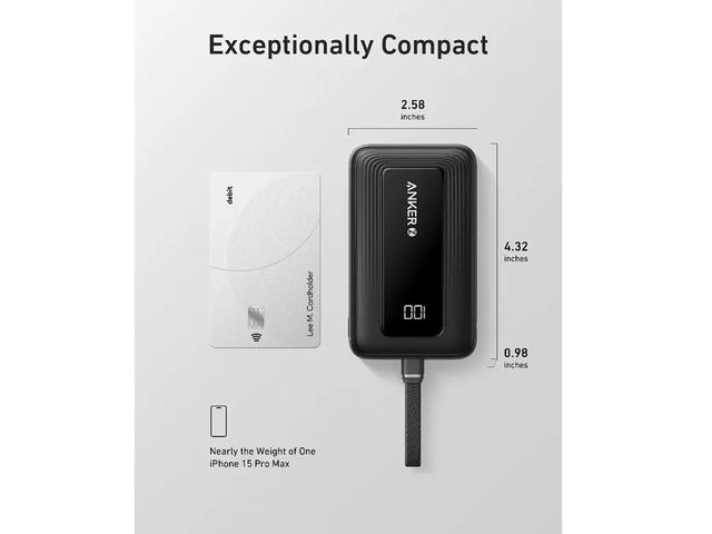 Бързо 30W зареждане Насладете се на авангардната скорост на технологията за бързо зареждане с 30 W, която само за 30 минути задвижва вашия iPhone 15 от 0 до 57 % от батерията. ️Ready for Endless Use Изработен за издръжливост, вграденият 5,4-инчов USB-C кабел е тестван да издържи над 10 000 огъвания, което гарантира, че ще издържи на трудностите при ежедневна употреба. ️Mighty Compact Power Тази компактна и мощна 10000 mAh захранваща банка осигурява до 2 пълни зареждания за iPhone 15 и 1,94 зареждания за Samsung S24, което я прави идеална за пътуване. Двупосочно зареждане 30W С двупосочното бързо зареждане през USB-C се наслаждавайте на до 30 W изход и 20 W вход, като гарантирате, че джаджите ви ще бъдат бързо заредени. (Забележка: Съвместим с iPhone 15 Series, MacBook, Galaxy, iPad, Switch, Steam Deck и др.) |