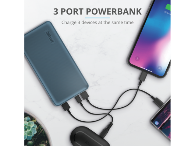 Приключиха дните на изхабените телефонни батерии! С бързо зареждане и висок капацитет, външната батерия Trust Primo Powerbank 15.000 mAh е най-удобният източник на енергия, когато сте на път. Изцяло съвместима както с USB-A, така и с USB-C, с възможност да зарежда до три устройства едновременно, вече можете да останете свързани навсякъде и по всяко време.