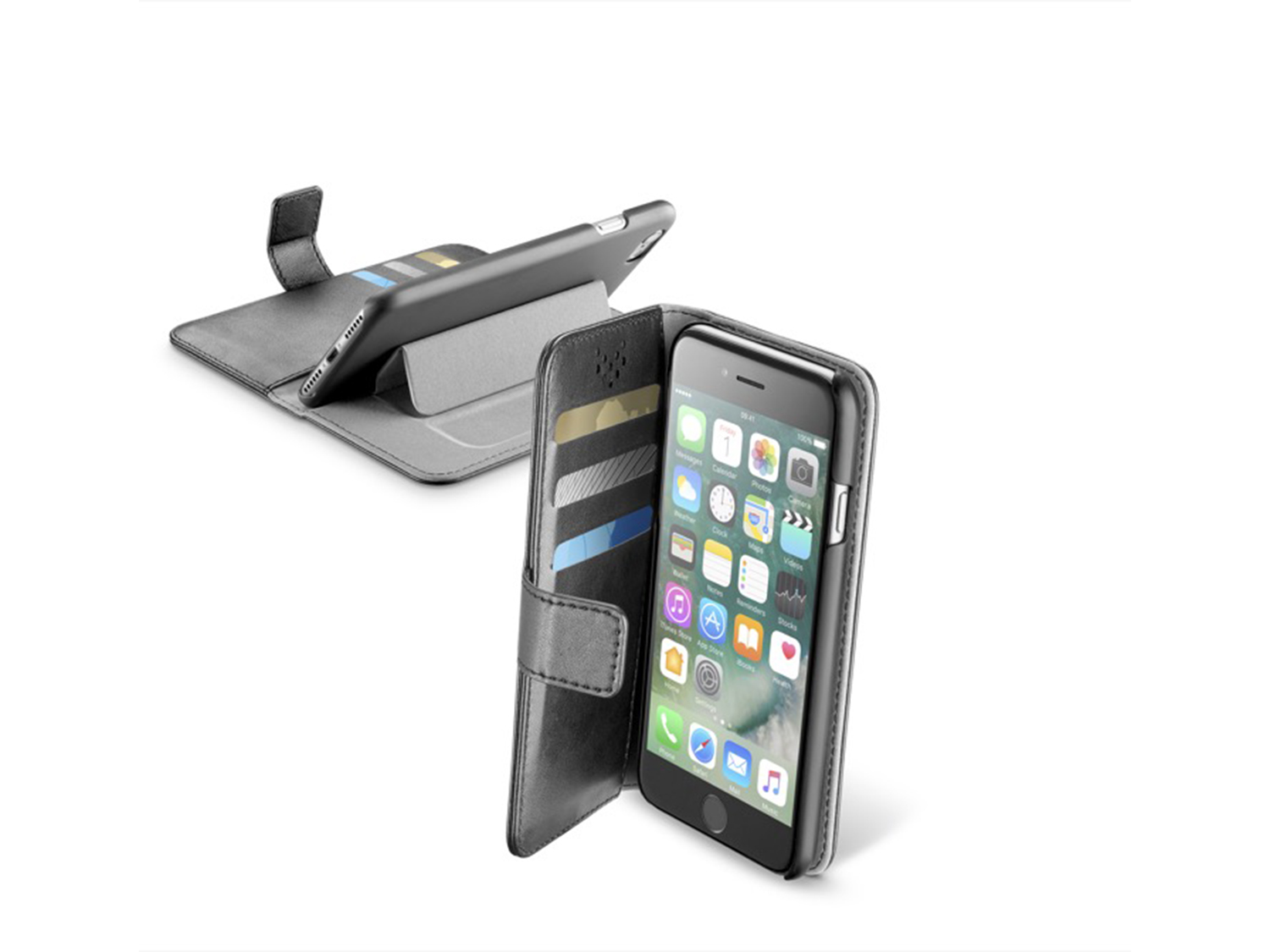 - Калъф за за iPhone 7 с джобчета за карти и банкноти от Cellular Line.