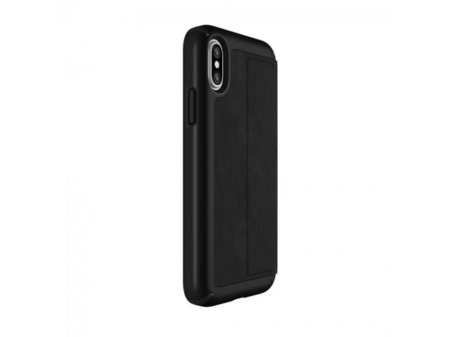 - Калъфа Speck Presidio Folio е изработен от висококачествена кожа. Конструкциятя на калъфа покрива вашия iPhone X изцяло благодарение на солидния преден капак, който се затваря плътно и надеждно и предпазва всеки милиметър от корпуса на телефона. И предната и задната част на устройството. Presidio Folio са изработени, посредством патентованата двуслойна технология на Speck.За максимално удобство, капакът може да се свива на 360 градуса.