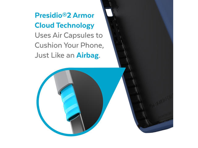 - Двуслоен дизайн с външна част от поликарбонат и вътрешна част с Impactum технология разработена от Speck и абсорбираща енергията при удaр. Защитава устройството при изпускане от 4 метра.